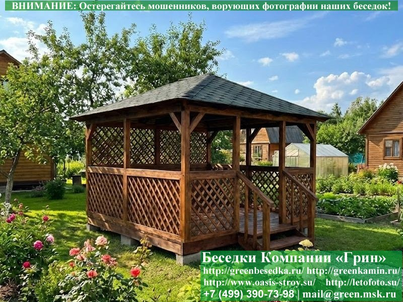 Летняя беседка для дачи 4х4 метра. 1 Сторона закрыта перголой (решеткой). 1 или 2 входа: 245 000 руб.