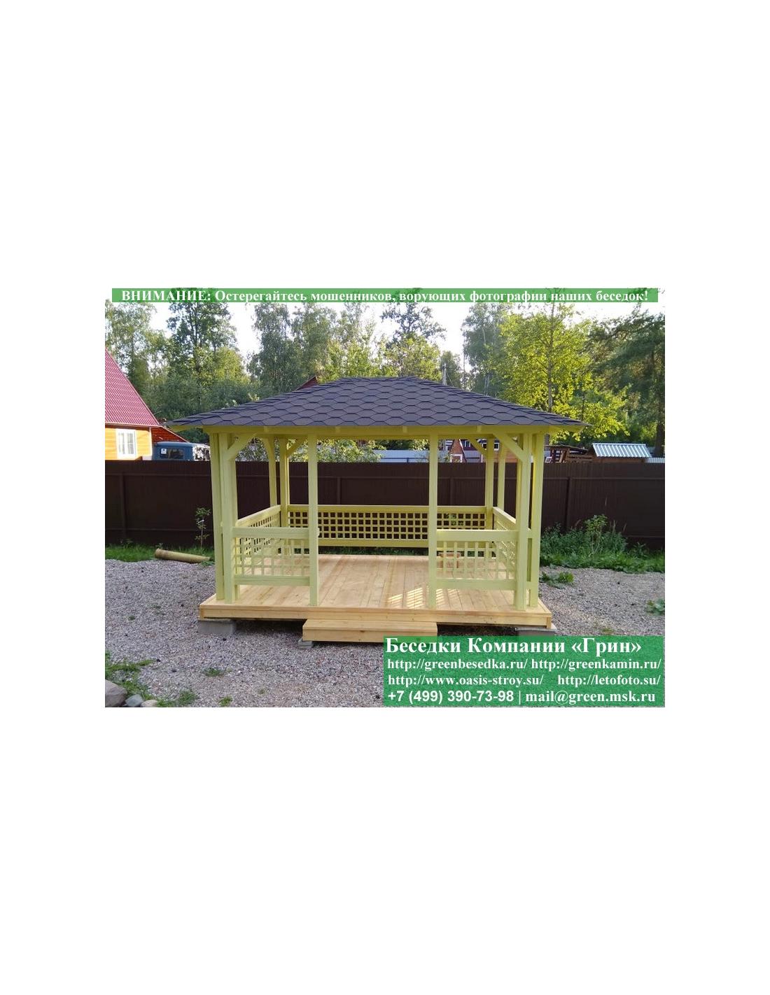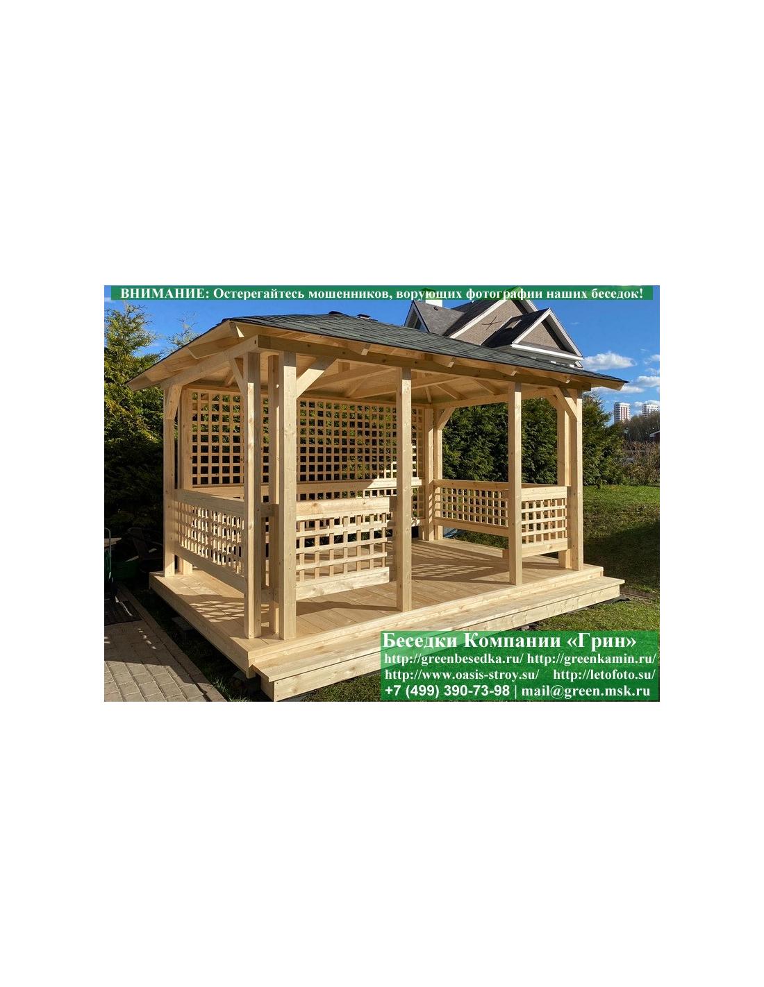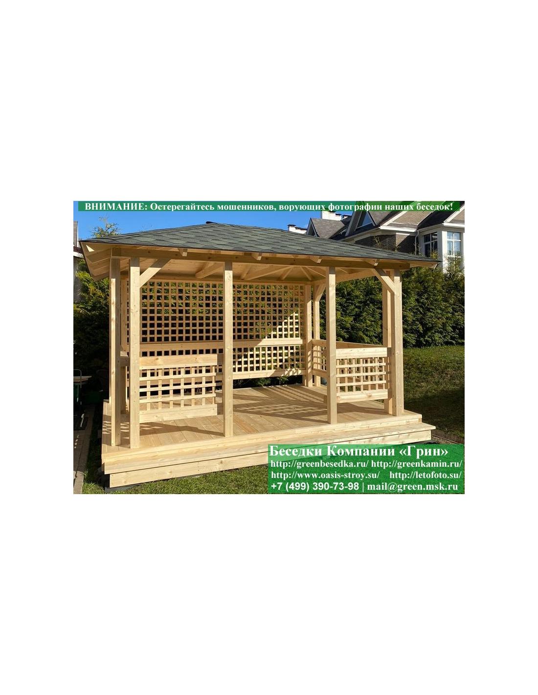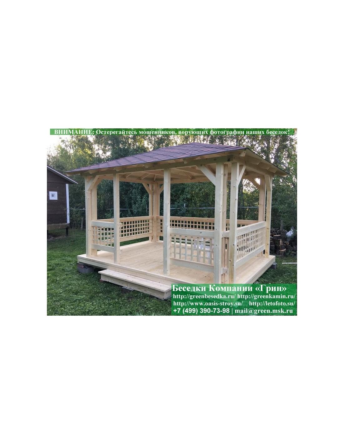 Красивая летняя деревянная беседка для дачи, загородного дома 3х4 метра. Фото и цены. В интернет-магазине "Оазис-Строй" вы можете купить элегантную летнюю беседку из дерева для дачи, сада 3х4 под ключ с монтажом в Туле и Тульской области. Изготовление и строительство интересных летних деревянных беседок  по готовым проектам размерами 3х4 метра возможно так же в Москве, Московской, Тверской, Калужской, Владимирской, Брянской, Ярославской, Рязанской, Ивановской, Орловской, Костромской, Новгородской, Липецкой и некоторых других областях.