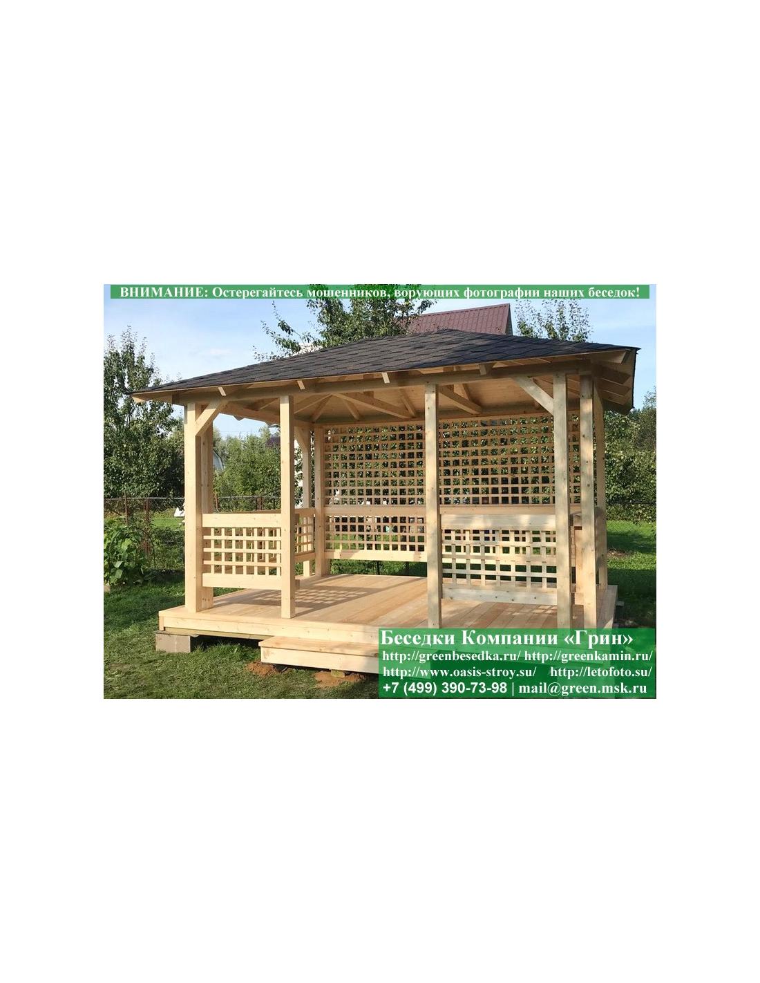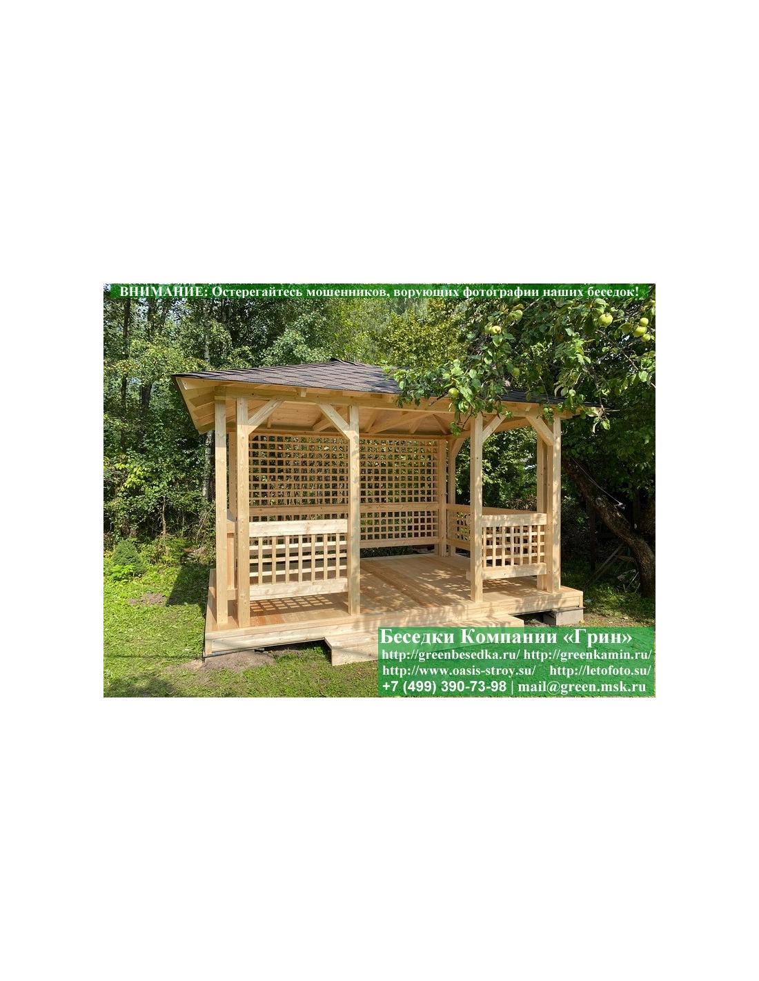 Летняя беседка для дачи 3х4 метра. 3-х и 4-х Метровые стенки закрыты перголой (решеткой) до потолка. 1 или 2 входа:176 000 руб.