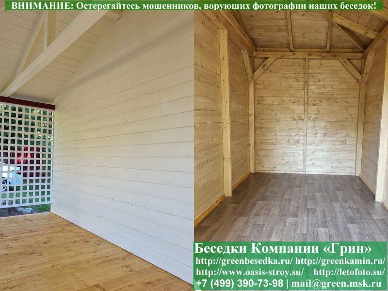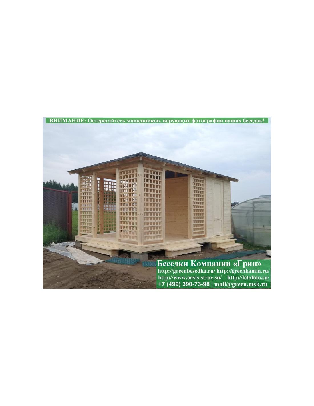 Стандартно беседка с хозблоком идет с проемами под крышей, между беседкой и хозблоком и хозблоком и улицей. Стоимость работ зависит от размеров беседки. Данная цена указана за работу беседки размерами 3х5 метров.