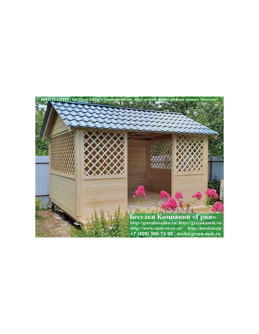 В стандартной поставке в виде кровли на крышу хозблоков, бытовок, беседок 3х3 метров кладется ондулин (мягкий шифер). Вы можете дополнительно заменить его на более надежную металлочерепицу. Цена 18000 руб.