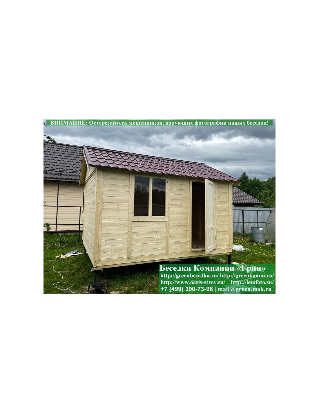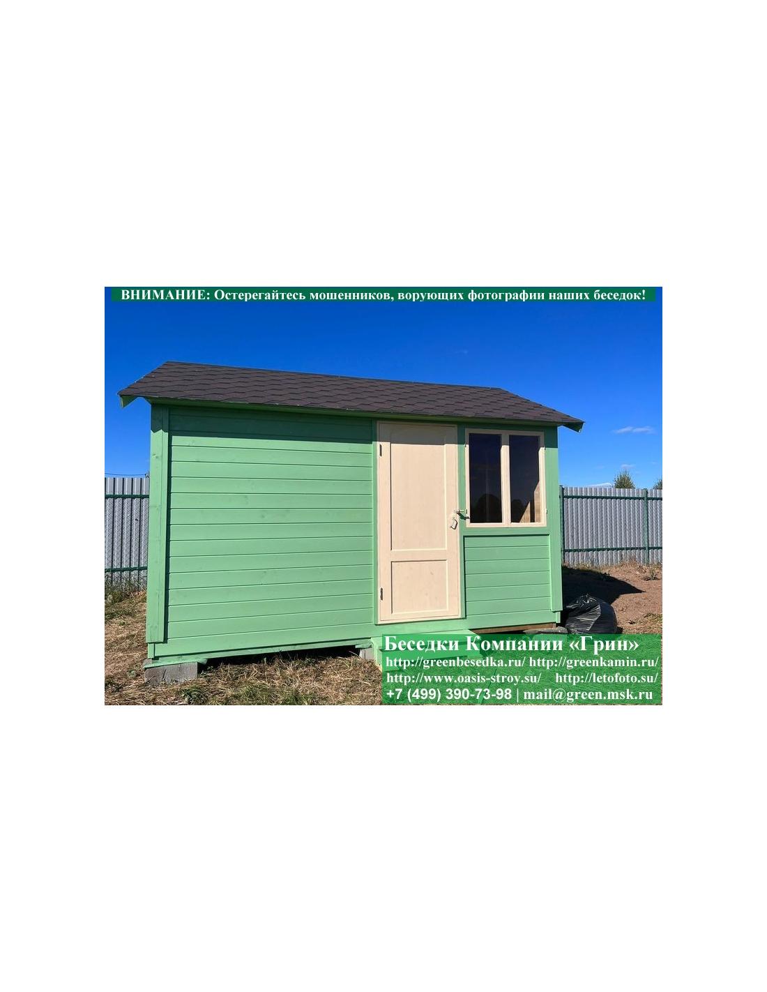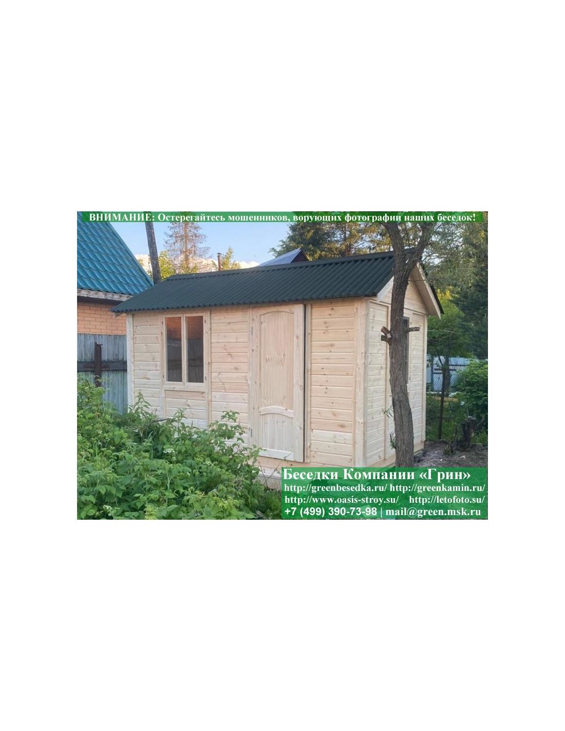 Деревянная дачная бытовка, хозблок, сарай 3х4 метра изготавливается из сосны. При строительстве беседок, бытовок хозблоков используется сухой материал камерной сушки. В цену включена бытовка 3х4 метра с одним открывающимся или не открывающимся окном. В качестве каркаса используется очень надежная имитация бруса 17х140 мм. В качестве несущих стоек используется строганый брус, по углам 90х90 мм. На крышу бытовки укладывается ондулин: Коричневых, Зеленых, Бордовых, Серых цветов. Срок изготовления и монтажа бытовки на участке составляет 5-10 дней. Беседки, бытовки, хозблоки поставляются в не крашеном виде. Возможна покраска бытовок или обработка антисептиком.