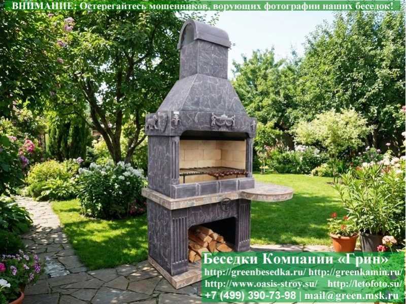 Готовая печь-барбекю для беседки в классическом дизайне.