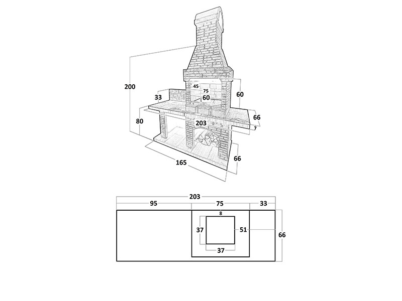 - Снизу предусмотрено место для дров;