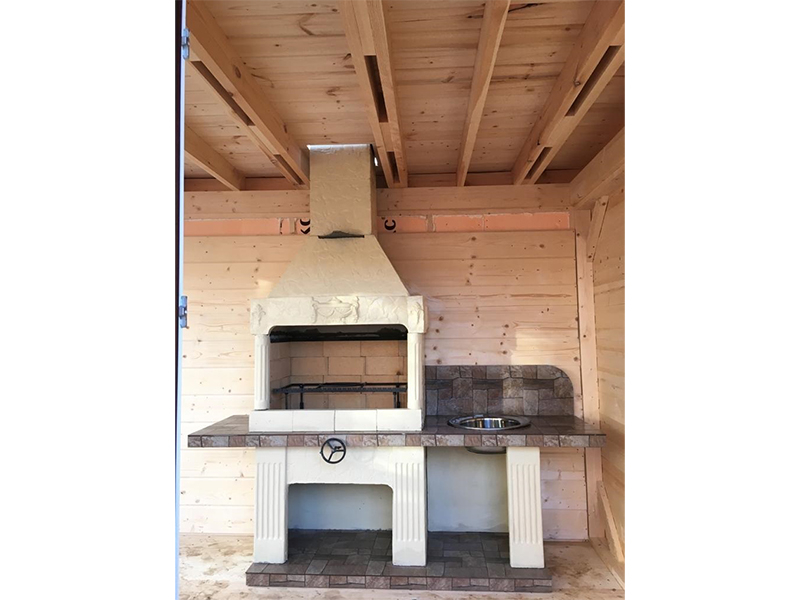 - Много места для хранения дров, угля. А еще в большую столешницу устанавливают раковину или добавляют туда другое функциональное решение.