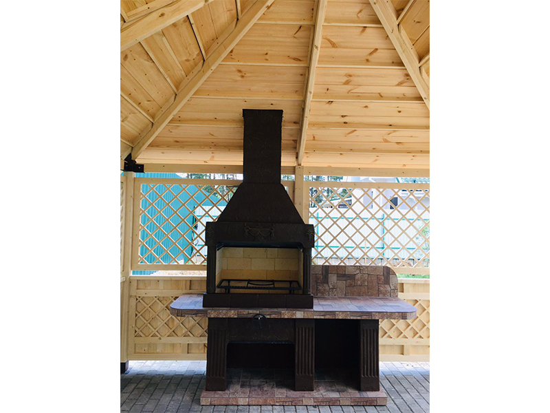 Топка изготовлена с использованием огнеупорного кирпича. Это означает, что материал вообще не боится высоких температур. Печь-барбекю для беседки, которую вы можете купить в Москве, Московской области и близлежащих регионах, рассчитана на интенсивное использование сразу после монтажа.