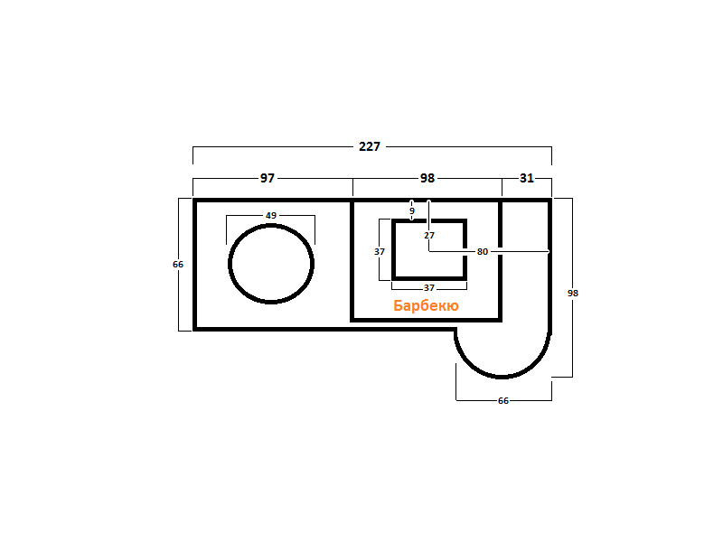Покупка комплекса-барбекю № 14 для беседки, летней кухни, дачи — понравится покупателям, которые ищут базовую конструкцию с просторной и удобной столешницей. Дизайн ненавязчивый — он подойдет и для сада со сложным ландшафтом, и для самого простого двора. Внутри нашей печи-барбекю от производителя — армированный бетон. Мы сами подбираем все материалы, а потому делаем ставку на лучшее из доступного на рынке.