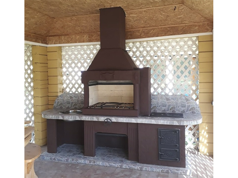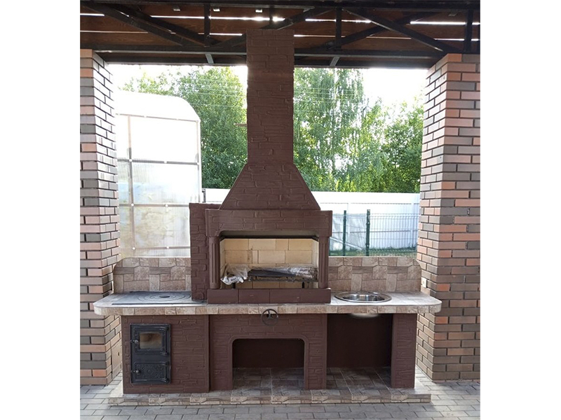 - Место под установку раковины. Для большой печи-барбекю на даче это незаменимый элемент.