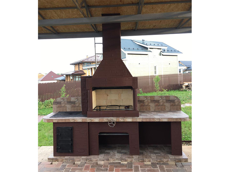 - Комплекс-барбекю с мойкой и плитой № 21 сделана из армированного огнеупорного бетона с добавлением керамзита;