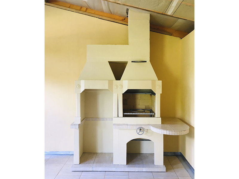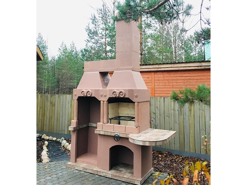 Печь этой модели имеет простой, лаконичный дизайн. Мы выбрали нейтральные цвета: коричневый, серый нескольких оттенков. А это означает, что подолгу искать место для конструкции не придется. Она впишется в любую беседку и на любой участок.